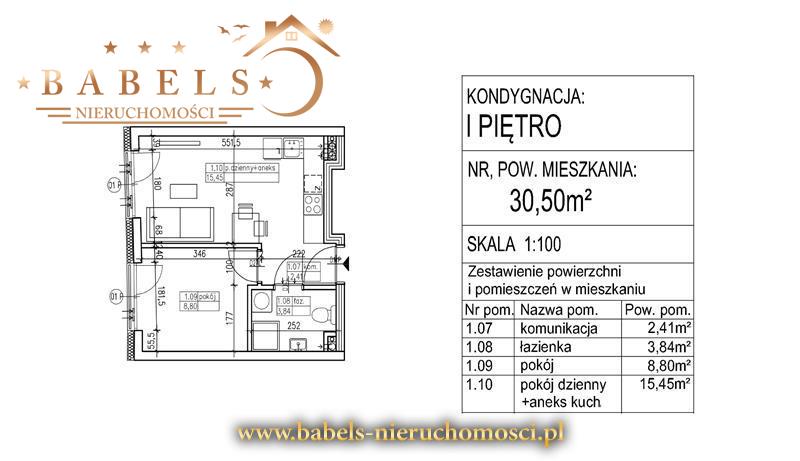 Mieszkanie w stanie deweloperskim, położone na I - piętrze w bloku z 2026r, składa się z ustawnej sypialni, salonu z aneksem kuchennym, oraz łazienki z wc i przedpokoju. Mieszkanie rozkładowe z wejściem do każdego z pomieszczeń osobno. Mieszkanie z południowo - zachodnio - wschodnią wystawą okienną (8K3M.A)