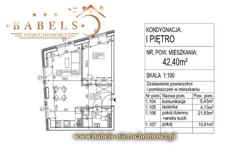 Mieszkanie w stanie deweloperskim, położone na I - piętrze w bloku z 2026r, składa się z ustawnej sypialni, salonu z aneksem kuchennym, oraz łazienki z wc i przedpokoju. Mieszkanie rozkładowe z wejściem do każdego z pomieszczeń osobno. Mieszkanie z południowo - zachodnio- wschodnią wystawą okienną (10K3M.A)
