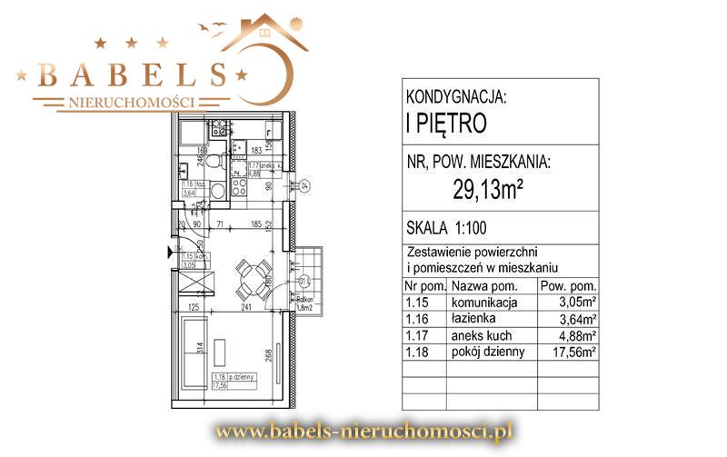 Mieszkanie w stanie deweloperskim, położone na I - piętrze w bloku z 2026r, składa się z ustawnego salonu z aneksem kuchennym - posiadającego wyjście na balkon o pow. 1,80 m2, oraz łazienki z wc i przedpokoju. Mieszkanie rozkładowe z wejściem do każdego z pomieszczeń osobno. Mieszkanie z północno - wschodnią wystawą okienną (12K3M.A)