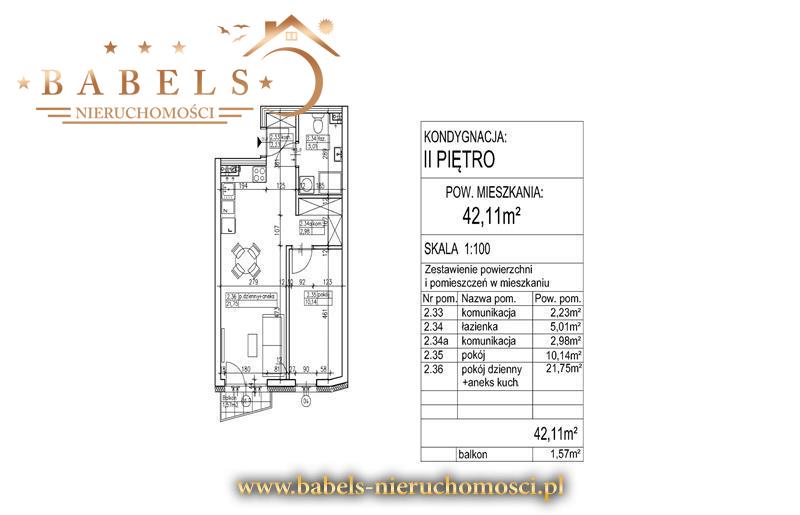 Mieszkanie w stanie deweloperskim, położone na II - piętrze w bloku z 2026r, składa się z ustawnej sypialni, salonu z aneksem kuchennym - posiadającego wyjście na balkon o pow. 1,57 m2, oraz łazienki z wc i przedpokoju. Mieszkanie rozkładowe z wejściem do każdego z pomieszczeń osobno. Mieszkanie z północno - wschodnią wystawą okienną (29K3M.A)