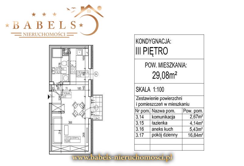 Mieszkanie w stanie deweloperskim, położone na III - piętrze w bloku z 2026r, składa się z ustawnego salonu z aneksem kuchennym - posiadającego wyjście na balkon o pow. 1,80 m2, oraz łazienki z wc i przedpokoju. Mieszkanie rozkładowe z wejściem do każdego z pomieszczeń osobno. Mieszkanie z północno - zachodnią wystawą okienną (38K3M.A)