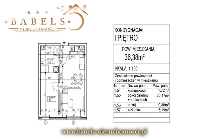 Mieszkanie w stanie deweloperskim, położone na I - piętrze w bloku z 2026r, składa się z ustawnej sypialni, salonu z aneksem kuchennym, oraz łazienki z wc i przedpokoju. Mieszkanie rozkładowe z wejściem do każdego z pomieszczeń osobno. Mieszkanie ze wschodnio - północną wystawą okienną (1K3M.B)