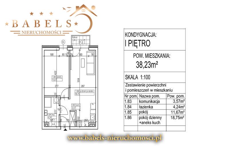 Mieszkanie w stanie deweloperskim, położone na I - piętrze w bloku z 2026r, składa się z ustawnej sypialni, salonu z aneksem kuchennym - posiadającego wyjście na balkon o pow. 1,80 m2, oraz łazienki z wc i przedpokoju. Mieszkanie rozkładowe z wejściem do każdego z pomieszczeń osobno. Mieszkanie z południowo -zachodnią wystawą okienną (7K3M.B)