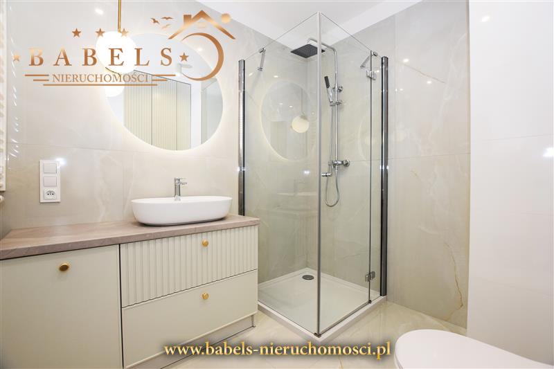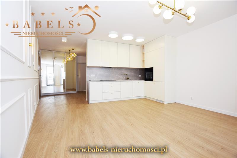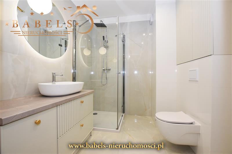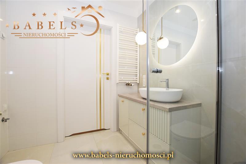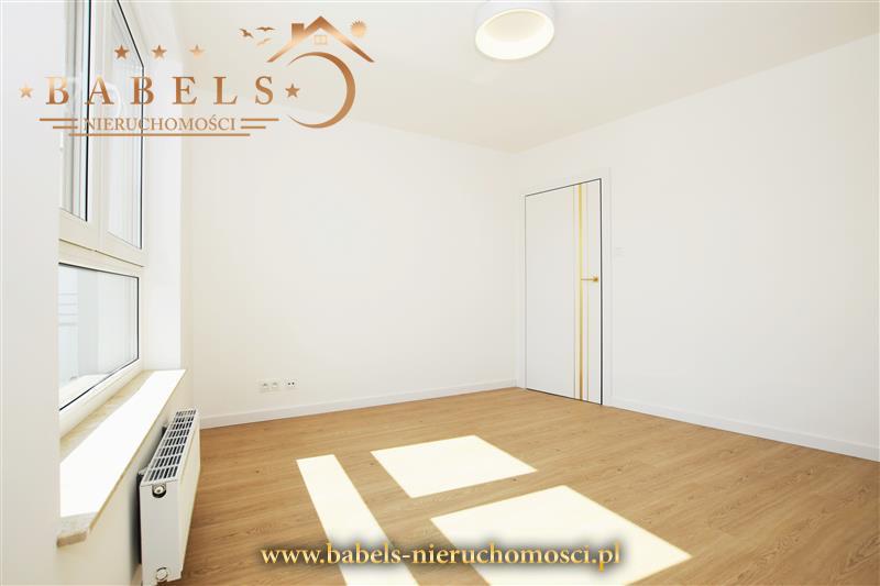 Całość zupełnie nowa i zaaranżowana w nowoczesnym stylu. Na podłogach w pokojach, salonie i kuchni oraz przedpokoju designerskie panele, natomiast w łazience kafle. Na ścianach gładzie, a w sypialni ozdobna tapeta. Natomiast łazienka wykończona jest ekskluzywnymi kaflami, a kuchnia lakobelem.