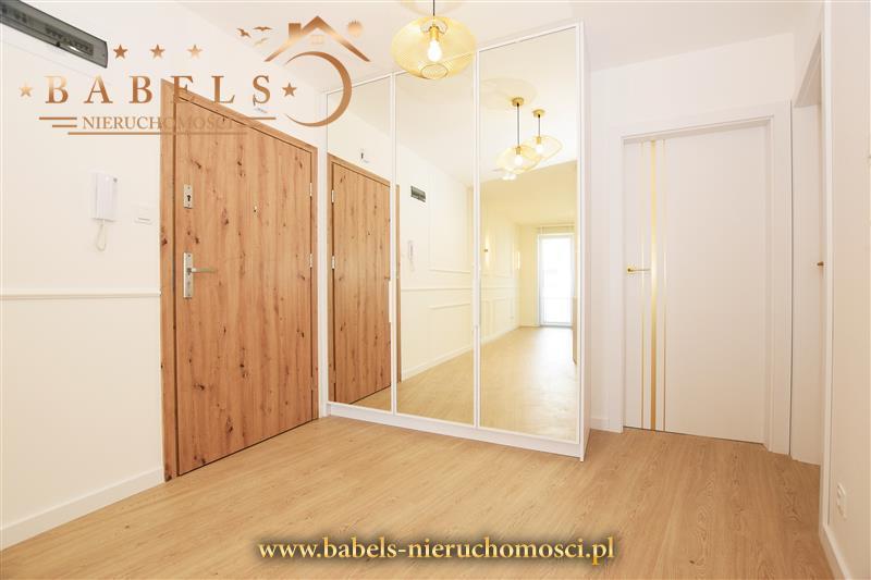 W cenie pełne wyposażenie, m.in. kuchnia w zabudowie ze sprzętem AGD (płyta indukcyjna, piekarnik, zmywarka, lodówko - zamrażarka, pochłaniacz pary) w przedpokoju szafa w zabudowie z lustrami i systemem drzwi przesuwnych. We wszystkich pomieszczeniach zamontowane oświetlenie. Dodatkowo w salonie okna wyposażone w rolety rzymskie i zasłony - przy drzwiach balkonowych, a w przedpokoju dwa obrazy ścienne.