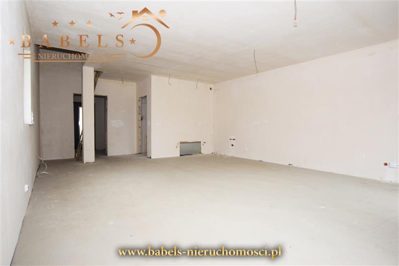 Na parterze domu mamy salon z jadalnią i kuchnią w formie aneksu oraz wyjściem na taras i działkę. Na tym poziomie znajduje się bardzo komfortowa łazienka w praktyczny sposób sąsiadująca z salonem. Tuż obok jest przedpokój z miejscem na szafę w zabudowie. Do każdego z pomieszczeń osobne wejście, co zapewnia domownikom z jednej strony uczucie wolności i przestrzeni, a z drugiej umiarkowanej intymności. Ściany wykończone tynkami gipsowymi. Zamontowano też wszystkie włączniki i gniazda elektryczne.