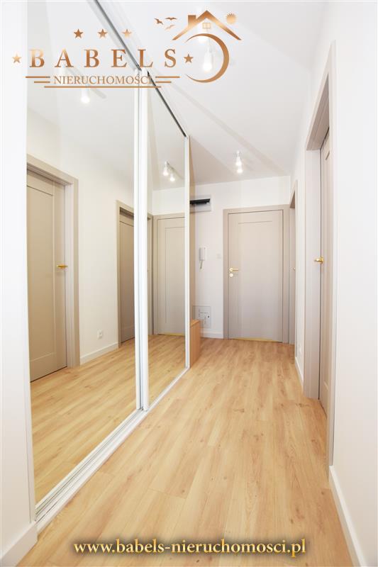 W cenie pełne wyposażenie, m.in. kuchnia w zabudowie ze sprzętem AGD (płyta indukcyjna, piekarnik, zmywarka, lodówko - zamrażarka, pochłaniacz pary) w przedpokoju szafa w zabudowie z siedziskiem i systemem drzwi przesuwnych posiadających lustra. We wszystkich pomieszczeniach zamontowane oświetlenie.