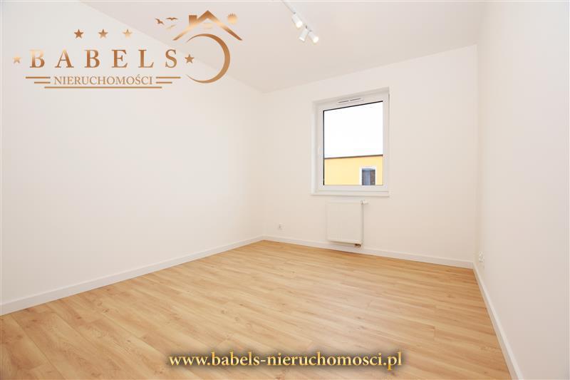 Całość architektoniczna zupełnie nowa, zaaranżowana w nowoczesnym stylu. Na podłogach panele zarówno w salonie jak i w kuchni, oraz w sypialni i przedpokoju. Natomiast w łazience kafle. Na ścianach gładzie. W przedpokoju szafa w zabudowie z siedziskiem i systemem drzwi przesuwnych posiadających lustra.