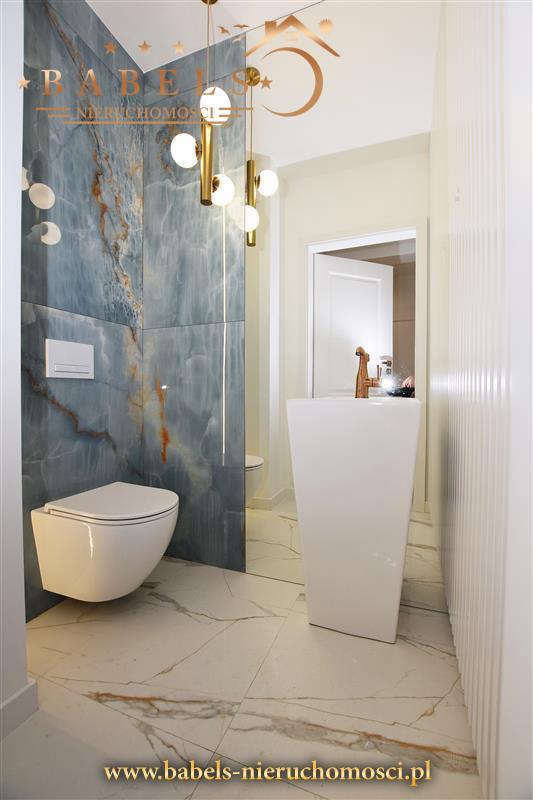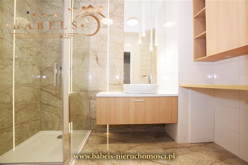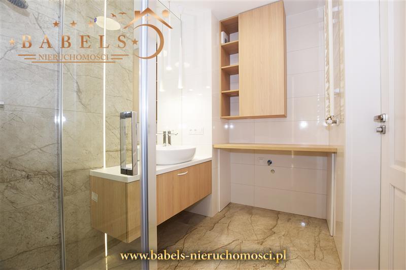 Całość zupełnie nowa, zaaranżowana w nowoczesnym stylu. Na podłogach w pokojach, salonie i kuchni designerskie panele, natomiast w łazience oraz w przedpokoju ekskluzywne kafle. Na ścianach gładzie, oprócz łazienki wykończonej kaflami i kuchni z lakobelem.