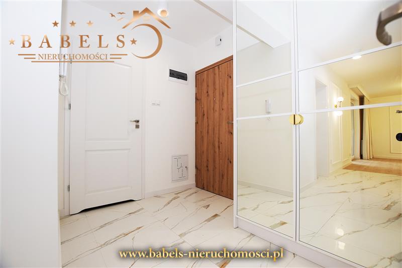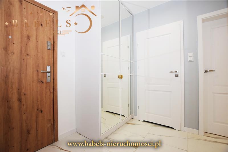 W cenie pełne wyposażenie, m.in. kuchnia w zabudowie ze sprzętem AGD (płyta indukcyjna, piekarnik, zmywarka, lodówko - zamrażarka, pochłaniacz pary) W przedpokoju szafa w zabudowie z siedziskiem i systemem drzwi przesuwnych posiadających lustra. We wszystkich pomieszczeniach zamontowane oświetlenie. Dodatkowo w salonie okna wyposażone w rolety rzymskie i zasłony - przy drzwiach balkonowych, a w przedpokoju dwa obrazy ścienne.