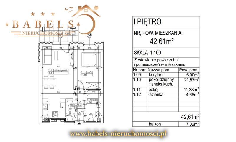 Mieszkanie w stanie deweloperskim, położone na I-piętrze w dwupiętrowym bloku - składa się z ustawnej sypialni, salonu z aneksem kuchennym - posiadającego wyjście na duży balkon o pow.7,02m2, oraz łazienki z wc i przedpokoju. Mieszkanie rozkładowe z wejściem do każdego z pomieszczeń osobno. Mieszkanie dwustronne z północno - zachodnią wystawą okienną. (10K.F.II.A)