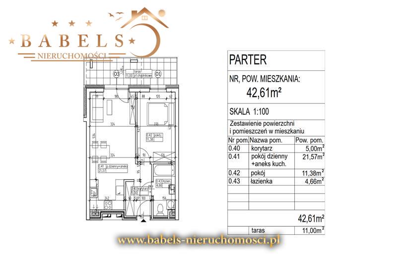 Mieszkanie w stanie deweloperskim, położone na PARTERZE w dwupiętrowym bloku - składa się z ustawnej sypialni, salonu z aneksem kuchennym - posiadającego wyjście na duży taras o pow.11,00 m2, oraz łazienki z wc i przedpokoju. Mieszkanie rozkładowe z wejściem do każdego z pomieszczeń osobno. Mieszkanie dwustronne z północno - zachodnią wystawą okienną. (3K.F.II.B)