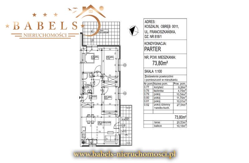Mieszkanie w stanie deweloperskim, położone na PARTERZE w dwupiętrowym bloku - składa się z dwóch ustawnych sypialni, pokoju i salonu z aneksem kuchennym - posiadającego wyjście na duży taras o pow. 20,53m2 i balkon o pow.10,18m2, oraz łazienki z wc i przedpokoju. Mieszkanie rozkładowe z wejściem do każdego z pomieszczeń osobno. Mieszkanie dwustronne z północno - zachodnią wystawą okienną. (5K.F.II.C)