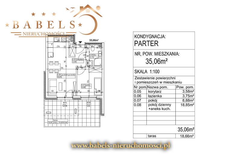 Mieszkanie w stanie deweloperskim, położone na PARTERZE w bloku z 2024r niemal w Centrum miasta, składa się z ustawnej sypialni, salonu z aneksem kuchennym - posiadającego wyjście na duży taras o pow. 18,66 m2, oraz łazienki z wc i przedpokoju. Mieszkanie rozkładowe z wejściem do każdego z pomieszczeń osobno. Mieszkanie z wschodnio - południową wystawą okienną (2K.M.D)