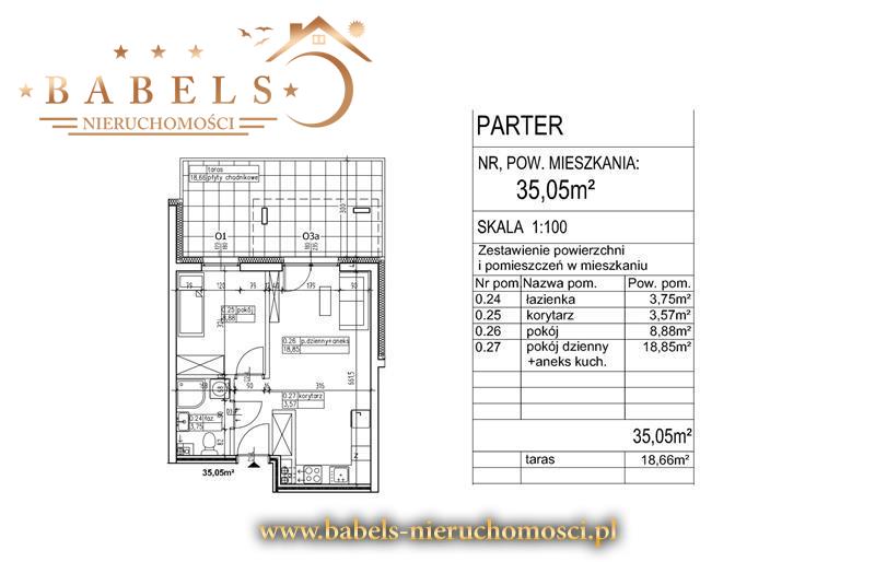 Mieszkanie w stanie deweloperskim, położone na PARTERZE w nowoczesnym bloku z 2024r niemal w Centrum miasta, składa się z ustawnej sypialni, salonu z aneksem kuchennym - posiadającego wyjście na duży taras o pow. 18,66 m2, oraz łazienki z wc i przedpokoju. Mieszkanie rozkładowe z wejściem do każdego z pomieszczeń osobno. Mieszkanie z zachodnio - południowo - północną wystawą okienną (1K.M.B)