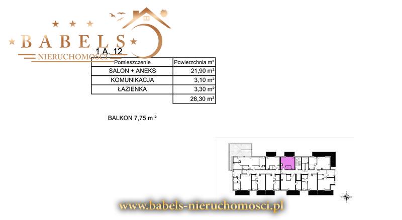 Mieszkanie w stanie deweloperskim, położone na I - Piętrze w bloku - apartamentowcu z terminem ukończenia na wrzesień 2025r. Lokal składa się z ustawnego salonu z aneksem kuchennym i wyjściem na duży balkon, oraz łazienki z wc i przedpokoju. Mieszkanie rozkładowe i jednostronne z południowo - zachodnią wystawą okienną (12.A.1.)