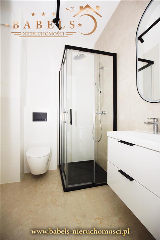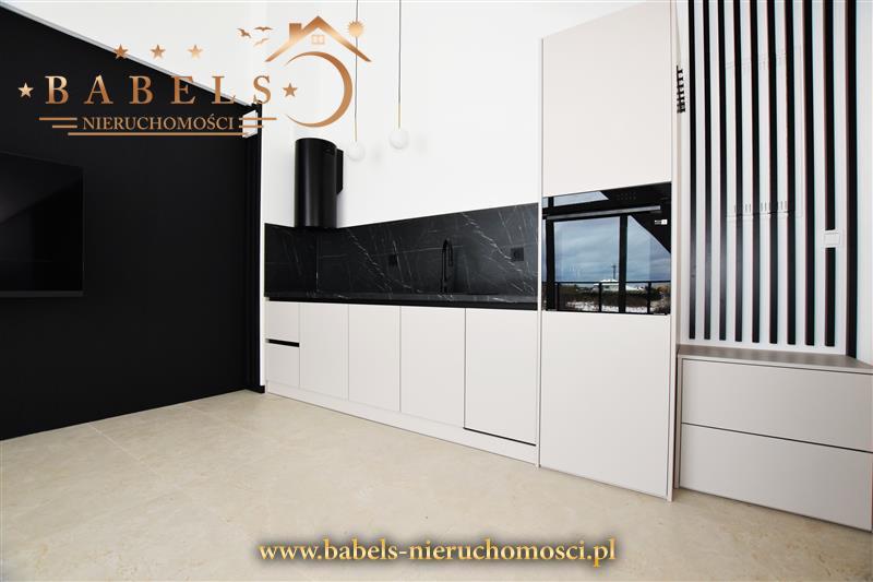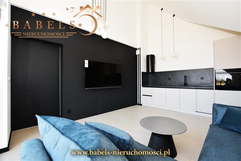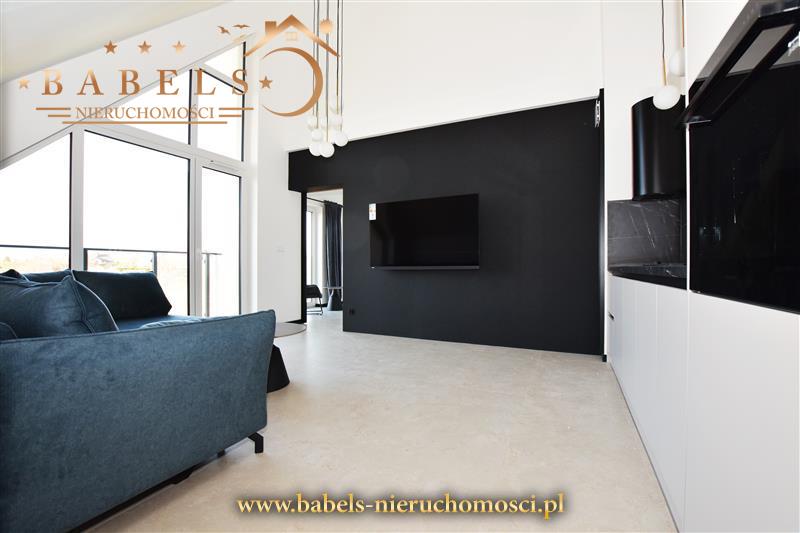 Całość architektoniczna zupełnie nowa, zaaranżowana w nowoczesnym stylu. Na podłogach w całym mieszkaniu designerskie kafle. Na ścianach gładź, a dodatkowo w salonie oraz jednej sypiali i antresoli stylowe tapety na jednej ze ścian. Mieszkanie wykończone pod klucz wraz z meblami w aneksie kuchennym i sprzętem AGD (płyta indukcyjna, lodówka, zmywarka, piekarnik) w zabudowie. Dodatkowo telewizor w salonie i komoda w przedpokoju. We wszystkich pomieszczeniach efektowne oświetlenie.