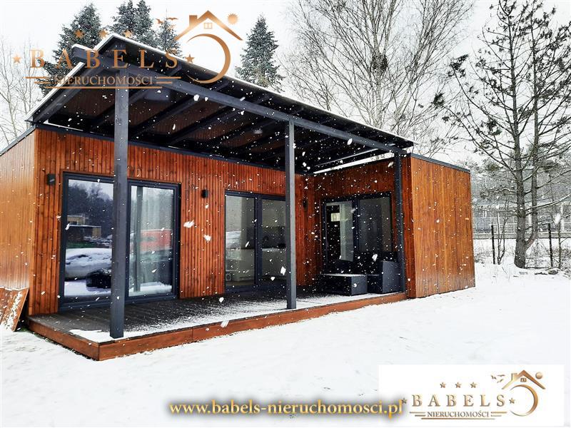 Dom ma kształt prostopadłościanu w formie litery "L" o powierzchni 34.50 m2 i składa się z salonu zawierającego aneks kuchenny, dwóch sypialni i łazienki z wc oraz przestronnego tarasu. Ten gotowy do zamieszkania dom posiada niezbędne podłączenia do mediów takich jak: prąd, woda, kanalizacja, a nawet wentylacja i jest w pełni wyposażony - stan deweloperski.