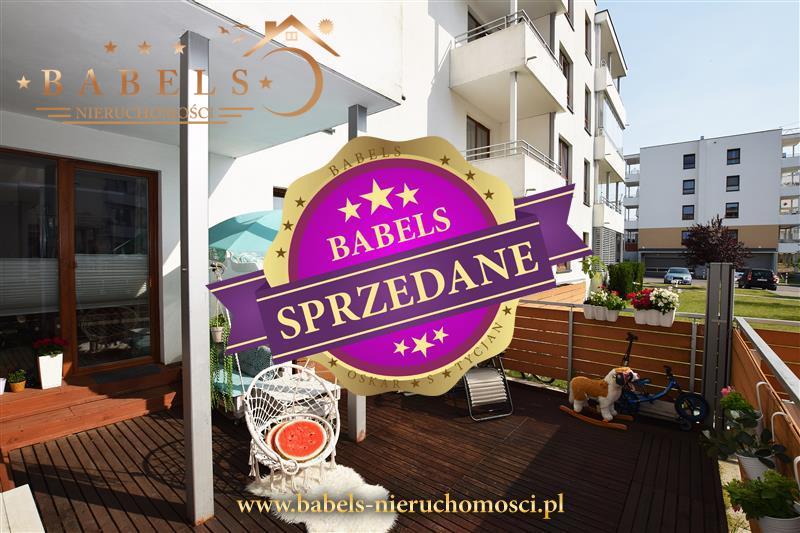 Mieszkanie o pow. użytkowej 59,93m2, położone na parterze w bloku z 2014r. Składa się z ustawnej sypialni (11,11 m2), salonu z aneksem kuchennym (25,82 m2) i wyjściem na duży taras (19,82 m2), oraz łazienki z wc (5,49 m2) i przedpokoju (7,77 m2). Mieszkanie rozkładowe z wejściem do każdego z pomieszczeń osobno. Mieszkanie bardzo słoneczne, z północno - zachodnią i południową wystawą okienną.